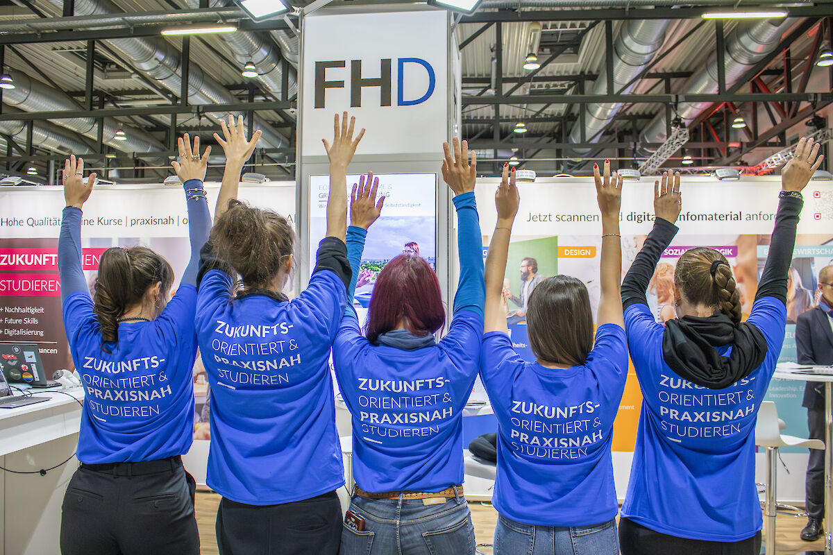 Unsere Besucher und Besucherinnen konnten erleben, wofür die FHD steht: praxisnahe Studiengänge ohne NC, enge Verbindungen zur Wirtschaft und internationale Ausrichtung. Neben vielen individuellen Gesprächen sorgten Vorträge und Workshops für neue Impulse und spannende Zukunftsthemen.