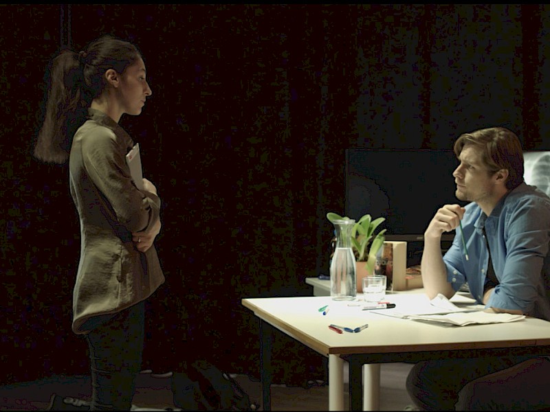 Im Rahmen des Kurzfilmprojektes im 3. Fachsemester des Studiengangs Medieninformatik/Mediendesign wird regelmäßig ein Regie-Workshop angeboten. In dem Workshop geht es darum verschiedene Szenen auf unterschiedliche Weise zu unszenieren, Texte zu interpretieren und natürlich das Arbeiten mit Schauspielern zu üben. Die beiden Schauspieler Anna Tarkhanova und Martin Döring gehören mittlerweile zum festen Ensemble der Fachhochschule.
